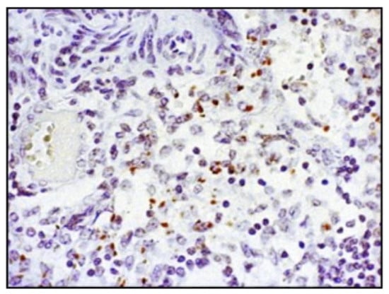 Representative lymph node section (positive external control). Original magnification 40×.
