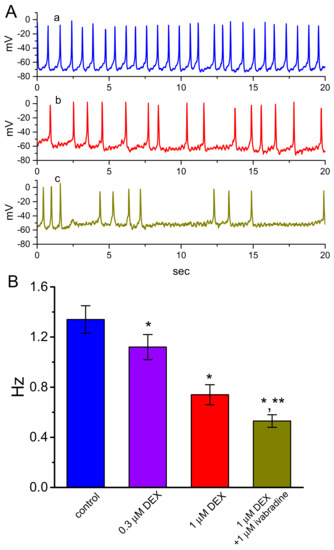 3.6. Effect of DEX on Spontaneous Action Potentials (APs) Recorded from GH3 Cells