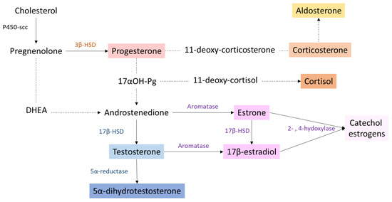 - Weidenfeld, J.; Schiller, H. Metabolism of Steroids by Human Brain Tumors. Clin. Neuropharmacol. 1984, 7, 395–398. [Google Scholar] [CrossRef] [PubMed]