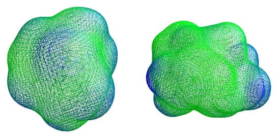 The surfaces areas of the structures observed were also generated and analyzed, using Vega ZZ version 3.2.0 to explore a possible role of complex formation in the enhancement of drug permeability []. Molecular lipophilicity potential (MLP), with a probe radius of 1.5 and mesh size of 0.60, Broto log P, lipole (a measure of the lipophilicity distribution) and virtual log P were also obtained (Table 2).