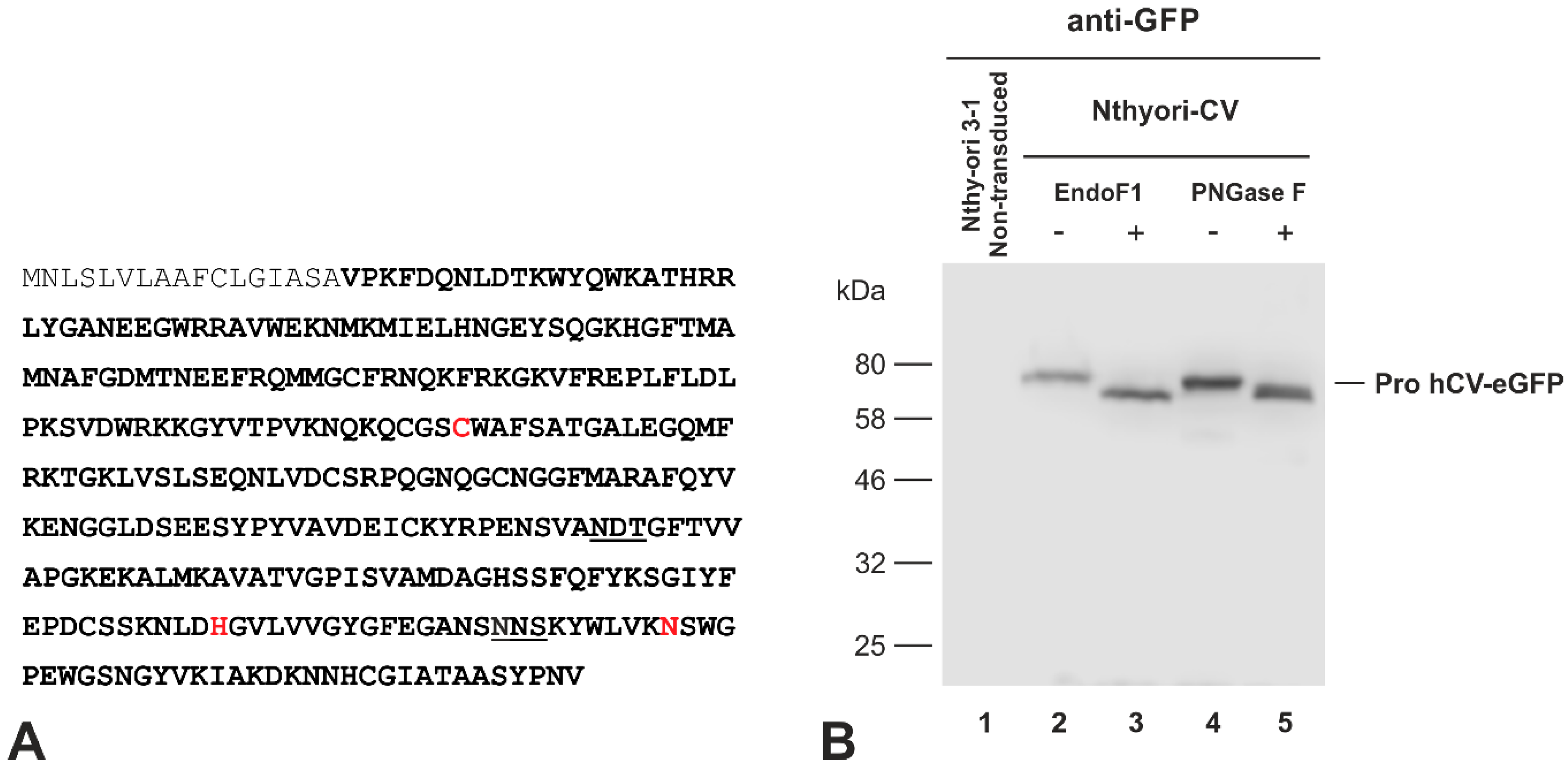 2.3. The Chimeric Protein hCV-eGFP Undergoes N-Linked Glycosylation in Thyroid Epithelial Cells