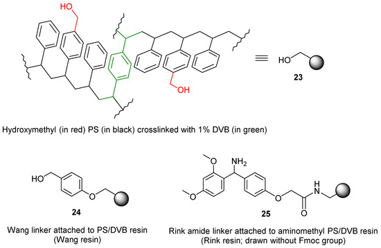 - Wang, S.-S. p-Alkoxybenzyl alcohol resin and p-alkoxybenzyloxycarbonylhydrazide resin for solid phase synthesis of protected peptide fragments. J. Am. Chem. Soc. 1973, 95, 1328–1333. [Google Scholar] [CrossRef]