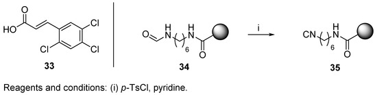 - Cankařová, N.; Schütznerová, E.; Krchňák, V. Traceless Solid-Phase Organic Synthesis. Chem. Rev. 2019, 119, 12089–12207. [Google Scholar] [CrossRef]