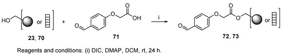 - Gil, C.; Brase, S. Traceless and multifunctional linkers for the generation of small molecules on solid supports. Curr. Opin. Chem. Biol. 2004, 8, 230–237. [Google Scholar] [CrossRef]