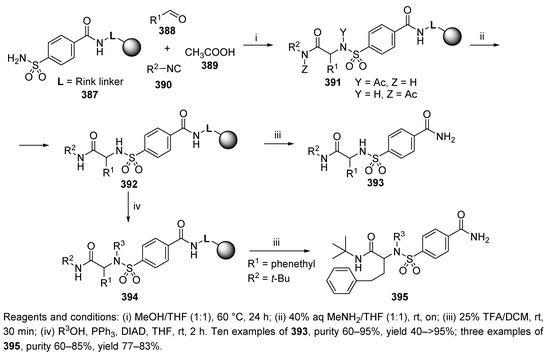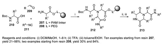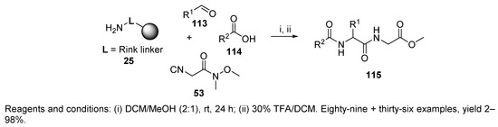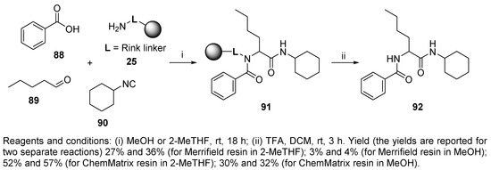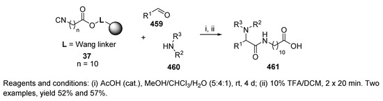 Cankařová N, Krchňák V. Isocyanide Multicomponent Reactions on Solid Phase: State of the Art and Future Application. International Journal of Molecular Sciences. 2020; 21(23):9160. https://doi.org/10.3390/ijms21239160