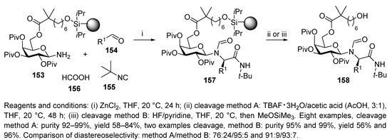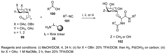 - Sutherlin, D.P.; Stark, T.M.; Hughes, R.; Armstrong, R.W. Generation of C-Glycoside Peptide Ligands for Cell Surface Carbohydrate Receptors Using a Four-Component Condensation on Solid Support. J. Org. Chem. 1996, 61, 8350–8354. [Google Scholar] [CrossRef]