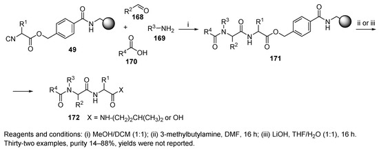 Cankařová, N.; Krchňák, V. Isocyanide Multicomponent Reactions on Solid Phase: State of the Art and Future Application. Int. J. Mol. Sci. 2020, 21, 9160. https://doi.org/10.3390/ijms21239160