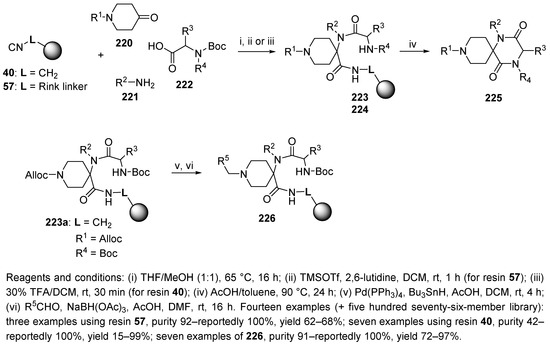 - Liu, Z.; Nefzi, A. Solid-Phase Synthesis of N-Substituted Pyrrolidinone-Tethered N-Substituted Piperidines via Ugi Reaction. J. Comb. Chem. 2010, 12, 566–570. [Google Scholar] [CrossRef][Green Version]