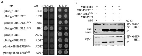 2.3. PRE1S67E Failed to Abolish the Interaction between IBH1 and HBI1
