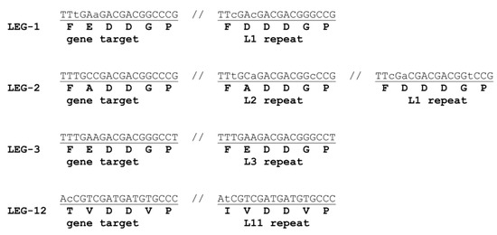 Eventually, TSDs targeted the insertion of different DNA segments, determining the mosaicism of Legionella RTX proteins (Figure 1). Sequence arrays plausibly arose from duplication events involving both repeats and flanking TSDs. The sequences of Legionella repeats are reported in Figure S1.