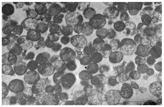 Representative transmission electron microscopy of the mitochondria-enriched fraction from brown adipose tissue (BAT) of acute low (0.4 IU) dose insulin-treated rats. Scale bar = 2 µm.
