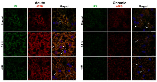 Furthermore, double immunofluorescence using anti-IF1 and anti-ATP synthase primary antibodies (Figure 13) revealed their strong colocalization, independent of the applied dose.
