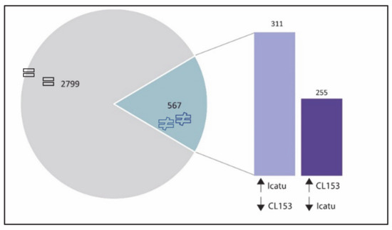 2.4. Differential Gene Expression Responses between Icatu and CL153