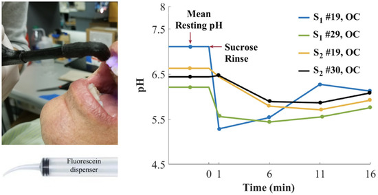 - Sharma, M.; Graham, J.Y.; Walczak, P.A.; Nguyen, R.; Lee, L.K.; Carson, M.D.; Nelson, L.Y.; Patel, S.N.; Xu, Z.; Seibel, E.J. Optical pH measurement system using a single fluorescent dye for assessing susceptibility to dental caries. J. Biomed. Opt. 2019, 24, 1. [Google Scholar] [CrossRef]
