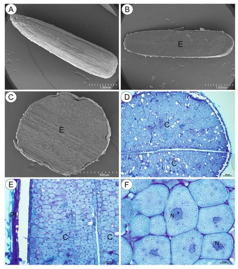 - Boesewinkel, F.D.; Bouman, F. The Seed: Structure. In Embryology of Angiosperms; Mohri, B.M., Ed.; Springer: Berlin/Heidelberg, Germany, 1984. [Google Scholar]