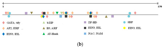 Abu-Romman (2014) [68] reviewed ZF-HD TF family and reported that these classes of homeodomain proteins are involved in regulating intercellular trafficking [69], inflorescence stem growth [70], and hormone and stress signaling [71,72,73].