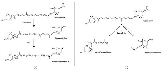 Natural (a) and synthetic (b) metabolites of fucoxanthin (adapted from Komba et al., 2018 [47]).