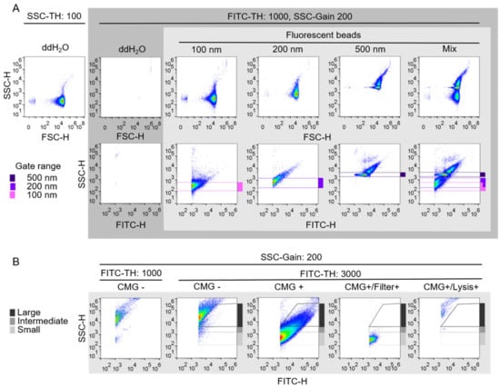 - Arraud, N.; Gounou, C.; Turpin, D.; Brisson, A.R. Fluorescence triggering: A general strategy for enumerating and phenotyping extracellular vesicles by flow cytometry. Cytom. Part A J. Int. Soc. Anal. Cytol. 2016, 89, 184–195. [Google Scholar] [CrossRef]