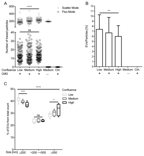 APA StyleOesterreicher, J., Pultar, M., Schneider, J., Mühleder, S., Zipperle, J., Grillari, J., & Holnthoner, W. (2020). Fluorescence-Based Nanoparticle Tracking Analysis and Flow Cytometry for Characterization of Endothelial Extracellular Vesicle Release. International Journal of Molecular Sciences, 21(23), 9278. https://doi.org/10.3390/ijms21239278