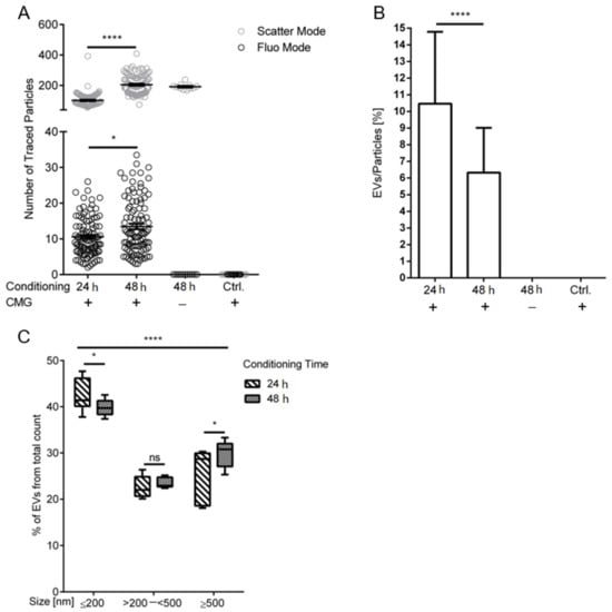 2.5. Increasing Conditioning Time Influences Release and Size Distribution of EndoEVs