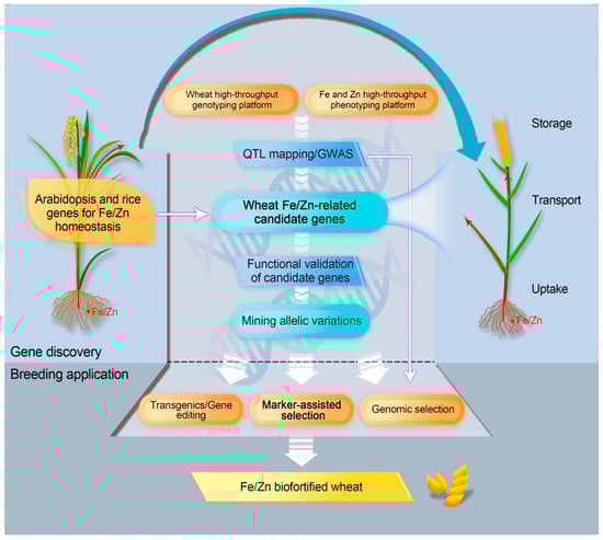 Tong, J.; Sun, M.; Wang, Y.; Zhang, Y.; Rasheed, A.; Li, M.; Xia, X.; He, Z.; Hao, Y. Dissection of Molecular Processes and Genetic Architecture Underlying Iron and Zinc Homeostasis for Biofortification: From Model Plants to Common Wheat. Int. J. Mol. Sci. 2020, 21, 9280. https://doi.org/10.3390/ijms21239280