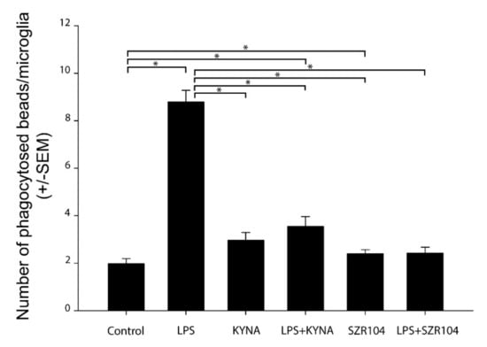- The inhibition of microglia phagocytosis by SZR104 and KYNA could also utilize AHR pathways, causing the decrease in TLR-4 expression on the cell surface [28], the induction of cytoskeletal changes [32] or the deregulation of the nuclear factor kappa-light-chain-enhances of activated B cells (NF-κB) pathway [28].