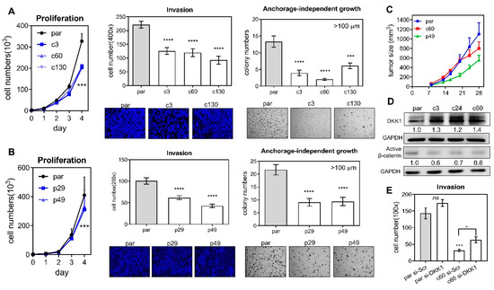 2.2. Deletion Attenuates Oncogenicity and Upregulates DKK1