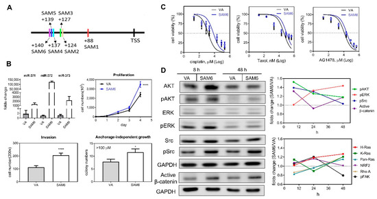 2.5. Endogenous miR-371/372/373 Expression Increases Oncogenicity, Drug Resistance and Signal Activation
