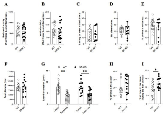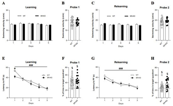 2.1. Cognitive Abilities Are Preserved in SR-KO Mice
