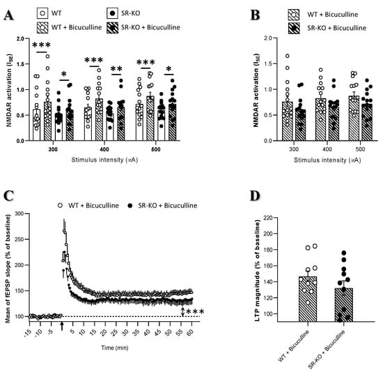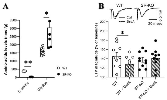 2.3. Changes in Glycine Levels Contribute to Preserving Functional Plasticity in SR-KO Mice
