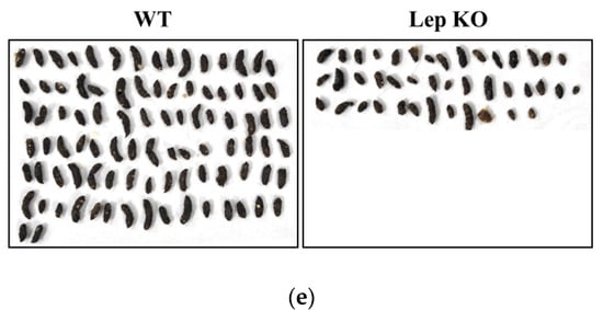 2.2. Alterations on the Feeding Behavior and Stool Parameters of Lep KO Mice