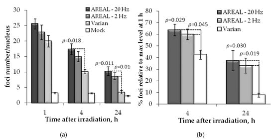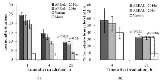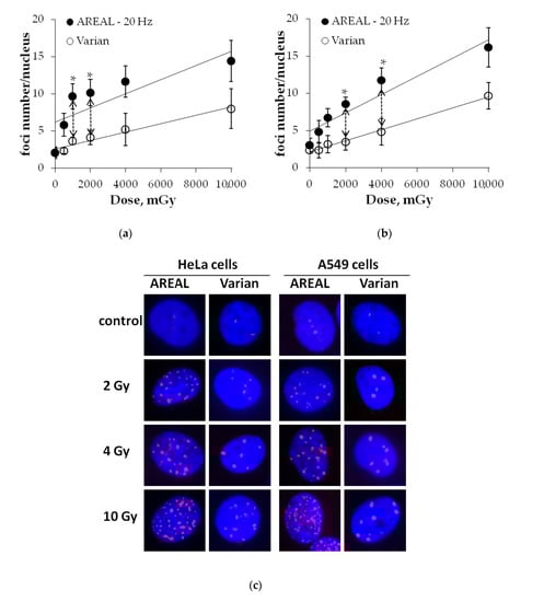 APA StyleBabayan, N., Vorobyeva, N., Grigoryan, B., Grekhova, A., Pustovalova, M., Rodneva, S., Fedotov, Y., Tsakanova, G., Aroutiounian, R., & Osipov, A. (2020). Low Repair Capacity of DNA Double-Strand Breaks Induced by Laser-Driven Ultrashort Electron Beams in Cancer Cells. International Journal of Molecular Sciences, 21(24), 9488. https://doi.org/10.3390/ijms21249488