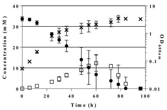 - Lin, E.C.C. Dissimilatory pathways for sugars, polyols, and carboxylates. In Escherichia coli and Salmonella: Cellular and Molecular Biology, 2nd ed.; Neidhardt, F.C.M., Curtiss, R., III, Ingraham, J.L., Lin, E.C.C., Low, K.B., Magasanik, B., Reznikoff, W.S., Riley, M., Schaechter, M., Umbarger, H.E., Eds.; ASM Press: Washington, DC, USA, 1996; pp. 307–342. [Google Scholar]