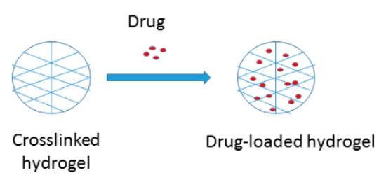 There are four techniques that are adopted for the preparation of hydrogels: chemical crosslinking, physical crosslinking, radiation cross-linking, and grafting polymerization. These techniques can enhance their viscoelasticity and mechanical properties for their application in pharmaceutical and biomedical fields []. Chemical cross-linking can be defined as the incorporation of monomers on the polymers or link of two polymer chains using cross-linking agents. The cross-linking of synthetic and biopolymers can be performed through the reaction of their functionalities such as carboxylic, amine, and alcohol groups with the help of cross-linkers such as aldehydes (e.g., adipic acid dihydrazide and glutaraldehyde). The major methods under chemical cross-linking include grafting, crosslinker, and radiation in aqueous and/or liquid state which are employed to formulate hydrogels from a range of biopolymers [].