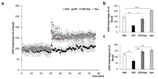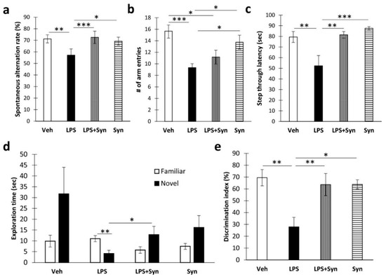 - Jo, J.-H.; Park, E.-J.; Lee, J.-K.; Jung, M.-W.; Lee, C.-J. Lipopolysaccharide inhibits induction of long-term potentiation and depression in the rat hippocampal CA1 area. Eur. J. Pharmacol. 2001, 422, 69–76. [Google Scholar] [CrossRef]