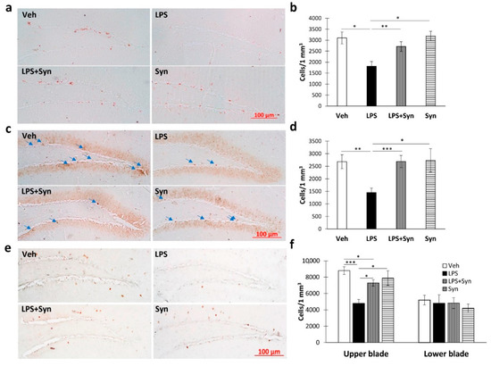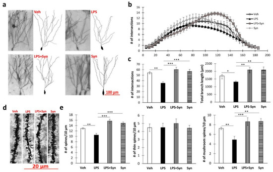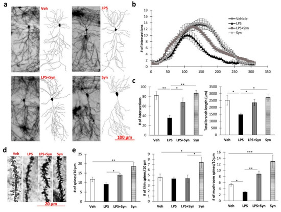 2.3. Effect of Synaptamide Treatment on LPS-Induced Dendrite Degeneration