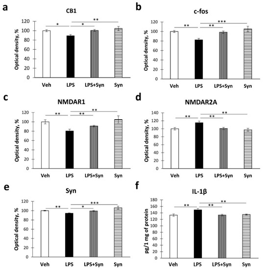 2.4. Effect of Neuroinflammation and Synaptamide Treatment on Hippocampal Protein Expression