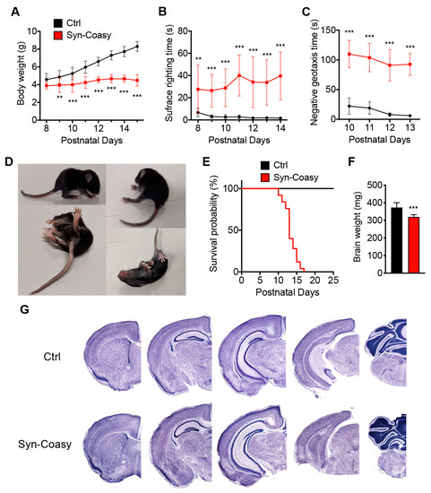 4.1. Generation of Coasyflox/flox, +/Syn1-Cre (aka Syn-Coasy) Mice