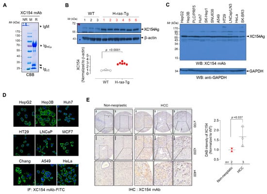2.1. A Tumor-Associated Autoantibody in the HBx-tg HCC Model Mouse Showed the Elevation of Its Target Antigen in Human HCC Tissues
