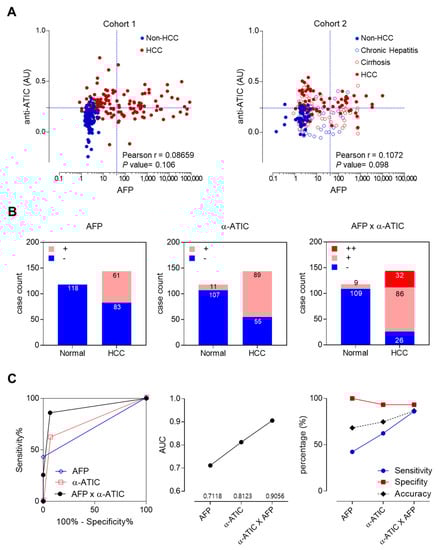2.5. The Simultaneous Detection of AFP and Anti-ATIC Autoantibody in Patient Serum Improved HCC Diagnosis Accuracy