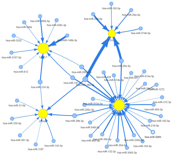 miRs regulatory network of LOX, LOXL1, LOXL2, and LOXL4.