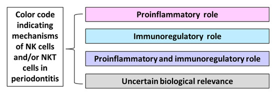 Moreover, a color code indicating mechanisms induced by NK and NKT cells in periodontitis was created (Figure 2).