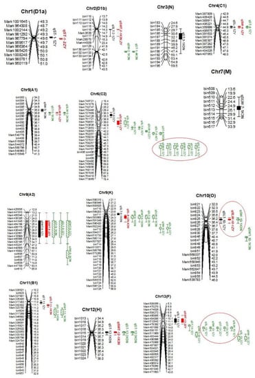 - Voorrips, R. MapChart: Software for the graphical presentation of linkage maps and QTLs. J. Hered. 2002, 93, 77–78. [Google Scholar] [CrossRef] [PubMed]