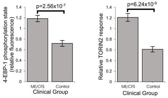 2.7. Stress-Sensing Pathways in ME/CFS Are Perturbed—TORC1 Is Chronically Hyperactivated