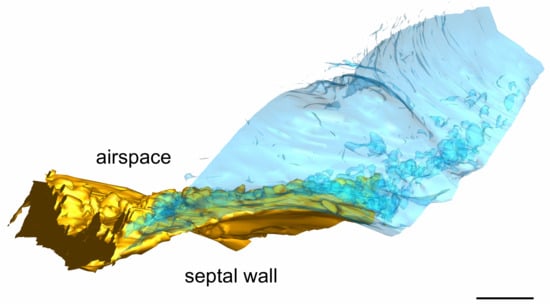 - Schneider, J.P.; Wrede, C.; Hegermann, J.; Weibel, E.R.; Mühlfeld, C.; Ochs, M. On the topological complexity of human alveolar epithelial type 1 cells. Am. J. Respir. Crit. Care Med. 2019, 199, 1053–1056. [Google Scholar] [CrossRef]
