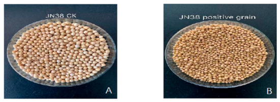 Near-infrared grain analysis is the most commonly-used spectral analysis technique. In the present experiment, a NIRS DS2500 grain analyser was used to select clean, single, T2, T3 generation-positive, mature seeds, which were placed in a measuring cup as the seed volumes need to be equal. The bottom of the cup and the edge of the infrared scanning area were placed in the sample tank of the near-infrared grain analyser, and the soybean acid content was determined according to the spectrum acquisition procedure established previously [30,31,32,33,34]. Each sample measurement was repeated three times. The measurement results were collected and analysed by the operation software, and the results were automatically saved to the computer (see Section 2.7).