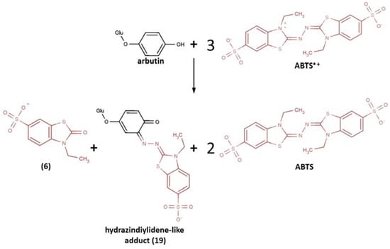 The reaction of ABTS•+ with arbutin [129]. Copyright 2016, adopted with permission from American Chemical Society.