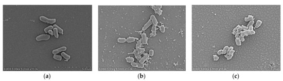 SEM micrographs of E. coli ATCC25922: (a) control; (b) LRpG-treated; (c) LRα-treated.