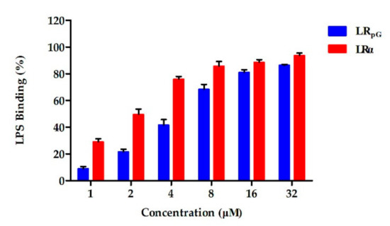 The binding ability of LRpG and LRα to lipopolysaccharide (LPS), determined by limulus amoebocyte lysate (LAL) assay. The diagram is based on at least three independent experiments.