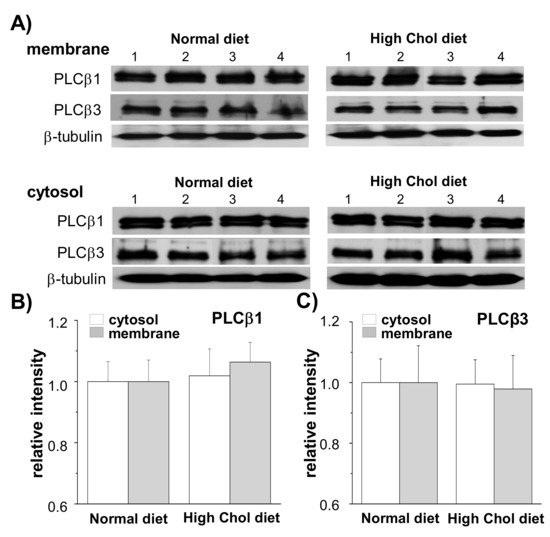 2.2. PLCβ1 Expression Increased in Rats on a High-Cholesterol Diet